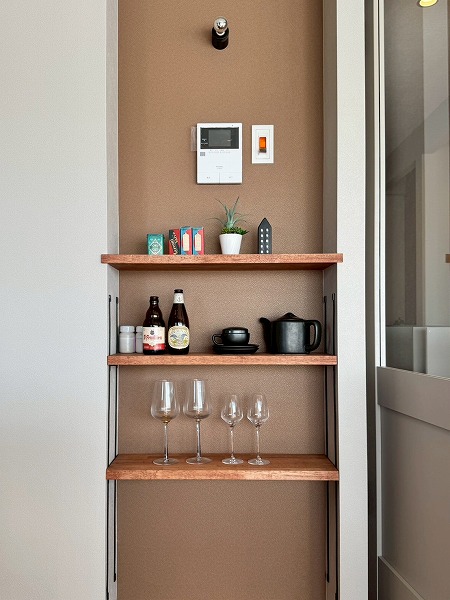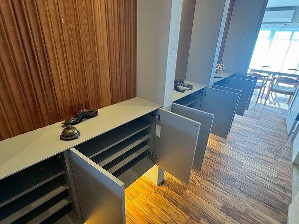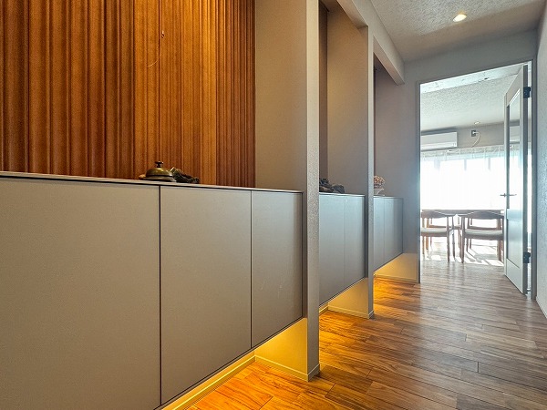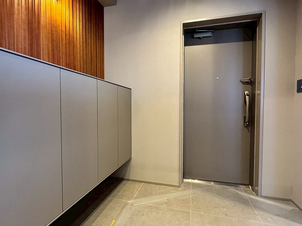 左右両サイドから出入りできるので、お出かけ先やお部屋の位置に合わせて効率良く移動できます。メインエントランスにはレンガ色のタイルが使われており、少しレトロな雰囲気が素敵でした✿