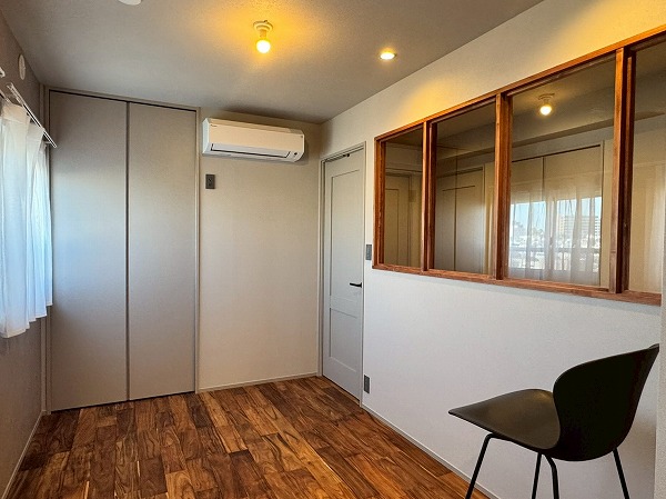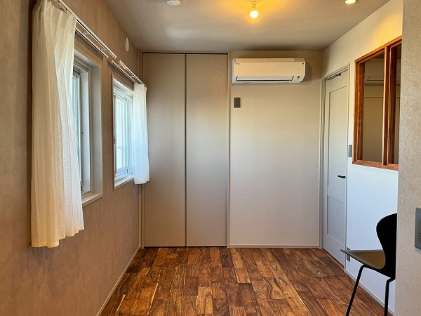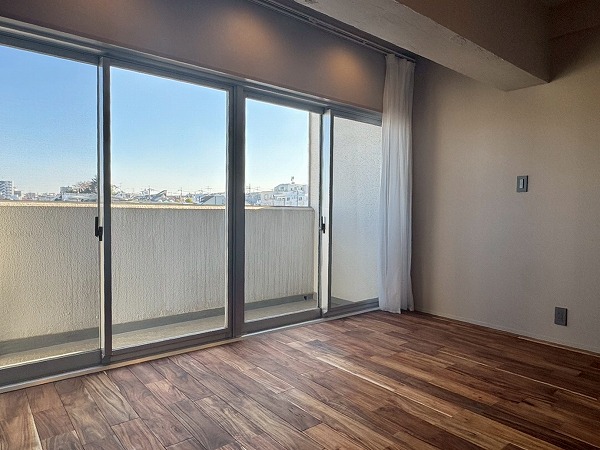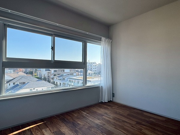 約7.1帖の洋室にも魅力的なコーナー窓があります!カーテンを全開に開ければ、窓を開けなくても外にいるような雰囲気になりますよ。クローゼットも備わっており、お部屋をスッキリ保つことができそうです。