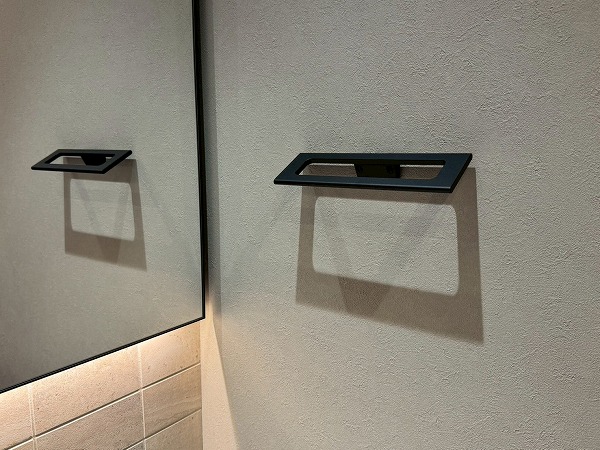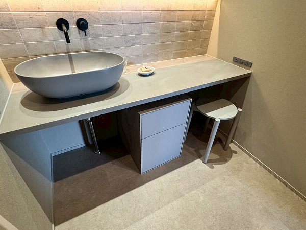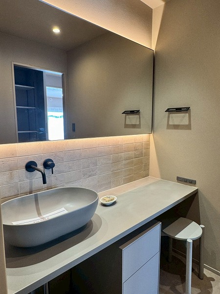 ホテルライクで上品な洗面台は、モダンな印象を与えるスタイリッシュデザインです。フロートタイプの洗面台で掃除がしやすく、清潔を保ちやすいですよ。収納棚を置いたり、椅子を置いたら、快適に身支度ができそうですね!