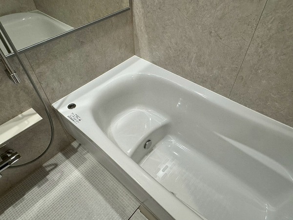 シンプルカラーのバスルームは、追い焚き・換気・乾燥・暖房機能付き。浴室乾燥機能を利用すれば、天候を気にせずにお洗濯ができます♪シャワーヘッドは大きめなので、広い範囲にお湯が広がり、体を早く温めることができますよ。