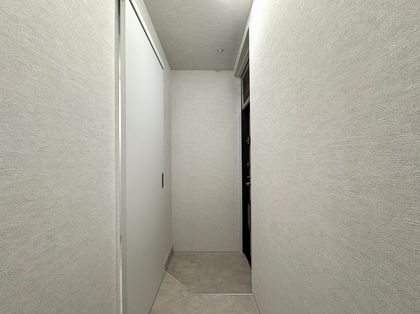 共用部は隅々まで掃除が行き届いていて、管理体制の良さが伺えますね♫建物の裏側に回ると、エントランスに繋がります。奥まった場所にあって、防犯面も安心◎