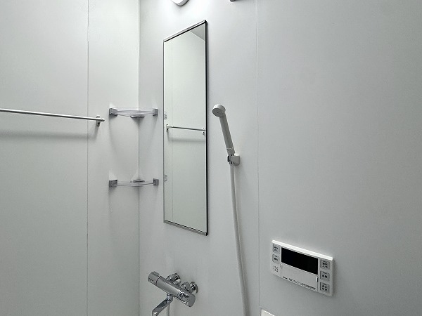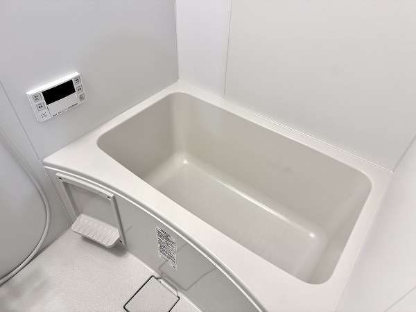 ホワイトでまとめられた清潔感のあるバスルームです。追い焚き機能が備わっていて、寒い冬でも浴槽のお湯が冷めることなく、快適な半身浴ができちゃいますよ♬1日の疲れを癒してくれるバスルームです。