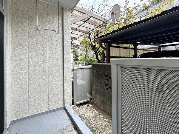 アプローチ沿いにはバイク置き場と駐輪場を完備しています。屋根が付いているので、雨の日も車体が汚れてしまう心配はありません✧