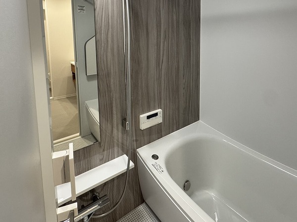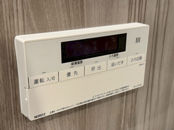 上品なカラーのバスルームは、追い焚き機能付きでいつでも温かい湯船に入ることができます。さらに浴室乾燥機能付きで、雨や花粉を気にせず洗濯ができ、生活が豊かになりますね。