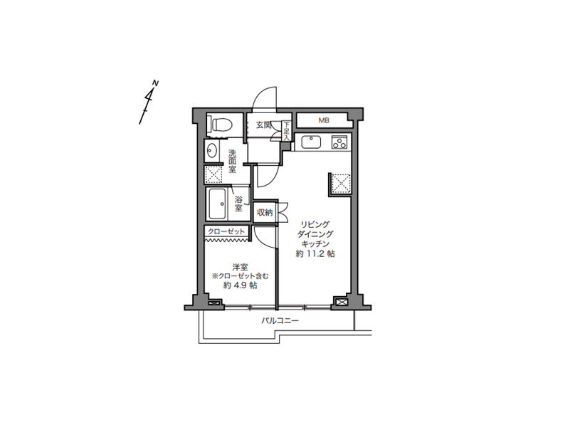 約11.2帖のメインルームは、背の低い家具を置くことで、より広く見せることができます。玄関からメインルームへと入るドア前の壁には、ピクチャーレールが備わっており、お好きな絵画やポスターをを飾ることができますよ。