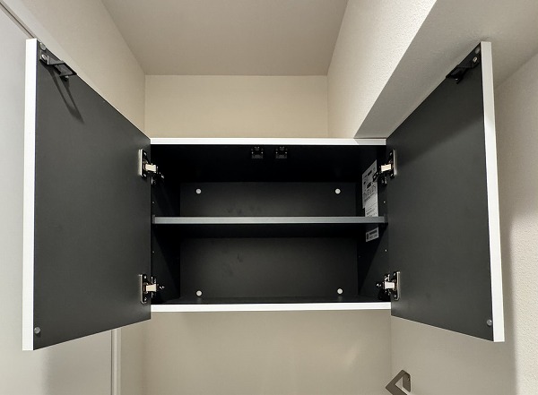 メインルームには、扉付きの収納があります。活動の中心となるメインルームに収納があることで、生活に必要な物を効率良く片付けることができますね。可動式となっており、棚の幅を変えれば、デットスペースなく収納できますよ。