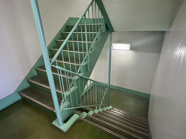 趣のある階段を上ると、エントランスにたどり着きます。階段には屋根があるので、雨の日でも濡れずに傘をしまったり、準備したりすることができ、慌てずに安心して出入りできますね。