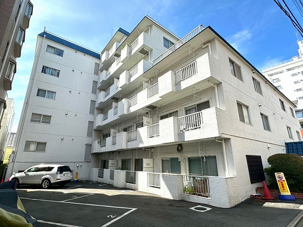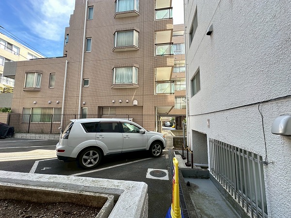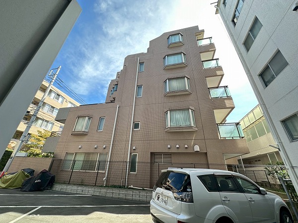 青い瓦屋根が印象的な『自由が丘第5マンション』。7階建て・総戸数49戸の中規模マンションです。1978年築ながらも数年前に大規模修繕工事が行われており、外観はとても綺麗✧向かって左手には駐車場も備わっています。