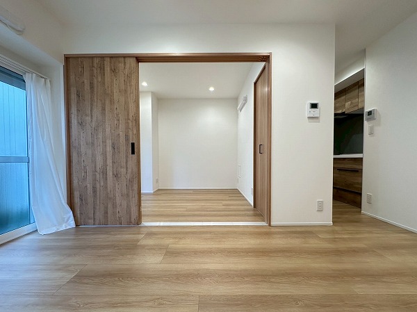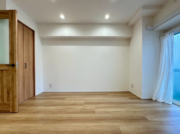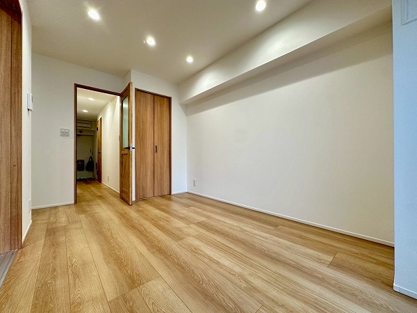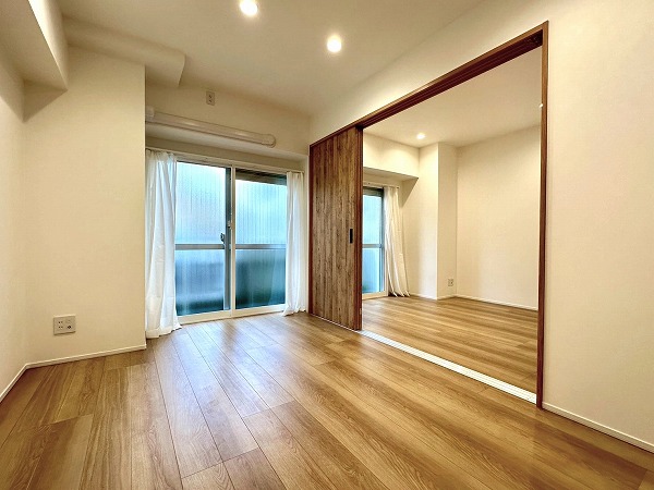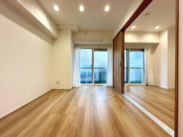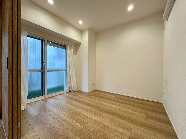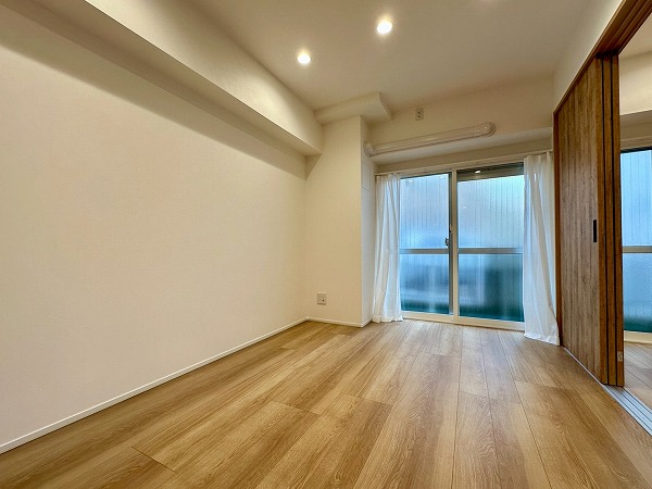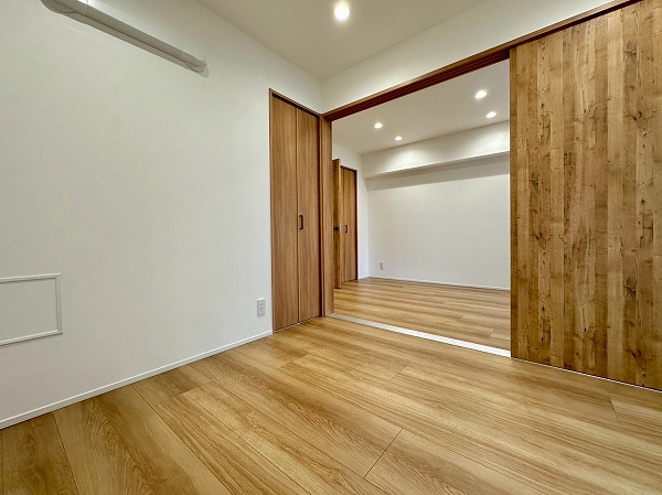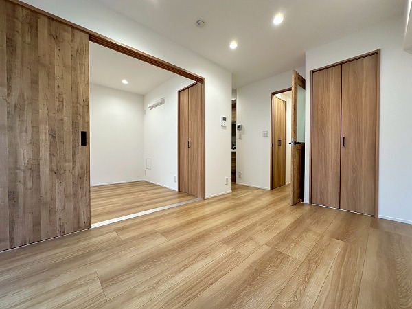およそ4.4帖の洋室は、寝室やワークスペースにもぴったり。スライド扉を開放すればリビングと繋がり、より広々とした印象に様変わりします♪クローゼット付きで収納面も安心です。