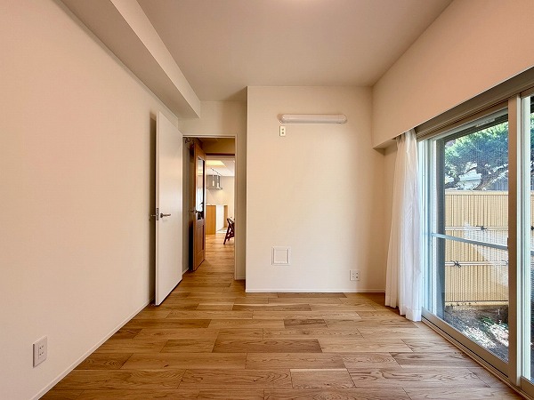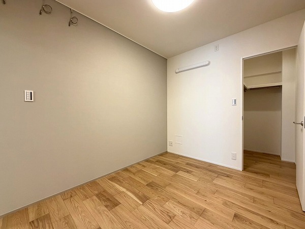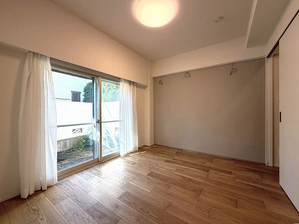 おおよそ6.1帖の洋室は専用庭に面していて、陽当たり良好。寝室にもピッタリです。各洋室に大容量サイズのウォークインクローゼットが備わっているのも大きなポイント♪季節もののコートや丈の長いワンピースなども綺麗に保管できます。