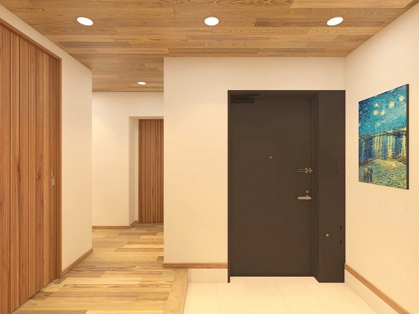 白を基調としたクロスと木目調のフロアが温かみのある玄関。大容量のシューズボックスを完備しているので、ご家族全員分の靴を綺麗にしまえます。洋室は約4.5帖・約5.2帖・約8.5帖の3部屋あり、ウォークインクローゼットも1箇所備わっています。