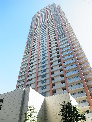 整ったシルエットの外観に、アクセントとして施されたオレンジのラインが印象的な『キャナルファーストタワー』。2008年に建てられた地下2階付地上42階建てのタワーマンションで、総戸数は415戸を誇る大規模レジデンスです。遠くからでも目を引く堂々とした佇まいは、水辺の街並みにもよく映えていました。