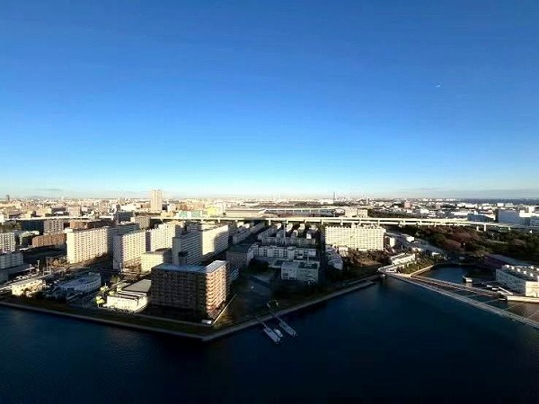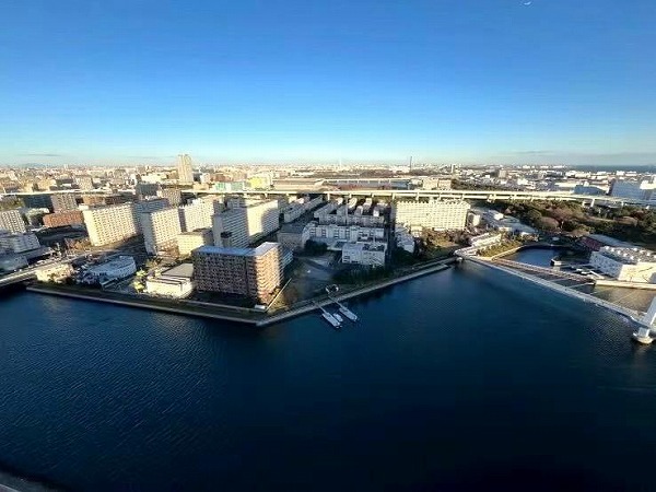 バルコニーは住戸を囲むように設けられており、すべてのお部屋から外の景色を感じられる贅沢なつくり。ガラスフェンスが採用されているため足元から視界が広がり、水面のきらめきや空の青さまでしっかりと楽しめる開放的な眺望が広がっていました。時間帯によって表情を変える景色は、このお部屋ならではの特別な魅力ですよ✧