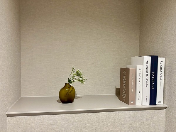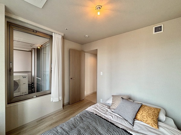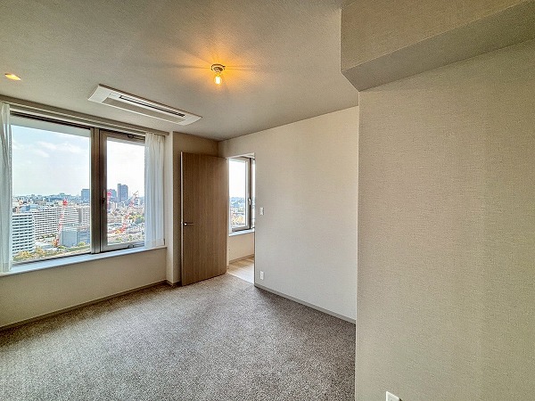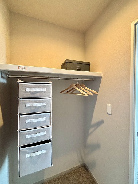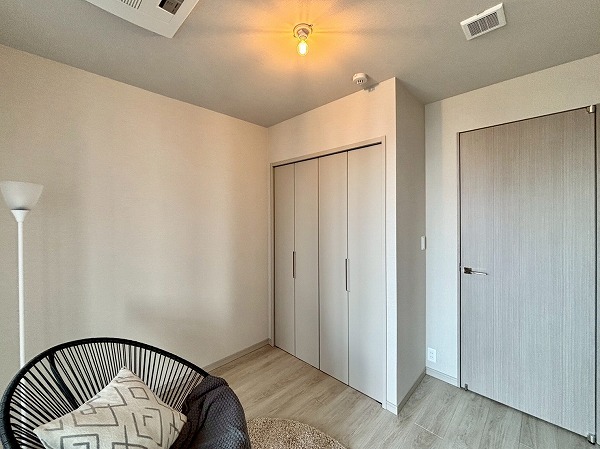 もう1つの洋室は約5.6帖で、メインルームから直接アクセス可能。コンパクトなクローゼットを2つ備えており、書類や趣味のアイテムなども効率よく収納できるため、空間をすっきりと保てます。デッドスペースが少ない設計で家具の配置もしやすく、落ち着いた雰囲気のためワークスペースや書斎としても最適です。