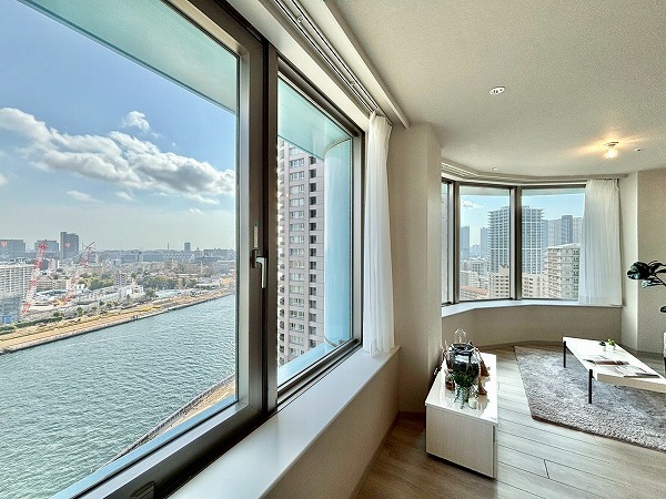17階の3SLDKが今回のお目当てです。シンプルかつ高級感のあるデザインが見事でした。メインルームや洋室の窓から望む景色はベイエリアならではのもの。夜には美しい夜景も楽しめますよ。収納の多さや動線にもこだわった魅力的な住まいです! ライター:mii【26B23】