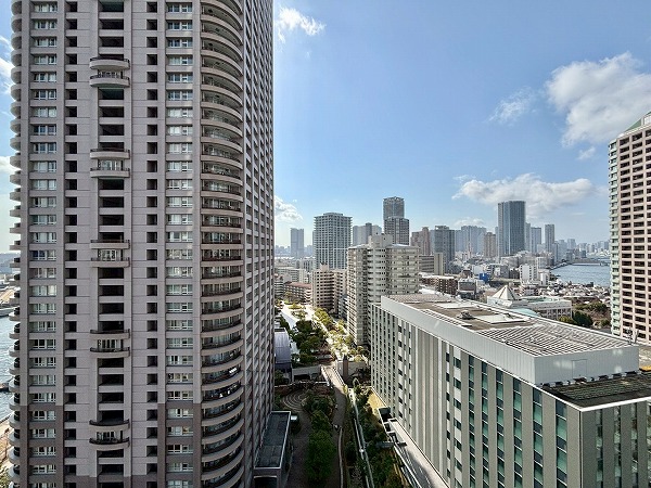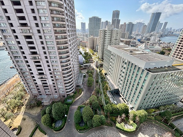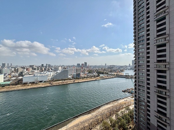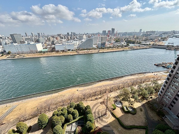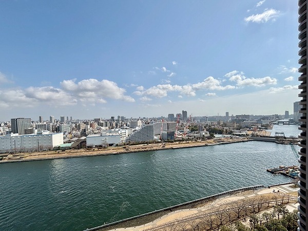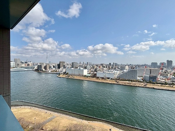 メインルームやお隣の約7.9帖の洋室の窓からは、「晴海運河」や公園の豊かな自然などをお楽しみいただけます♫北側に目をやると「東京スカイツリー」の姿も。バルコニーは運河には面していませんが、高層ビルが並ぶ都会的な街並みを望めますよ。