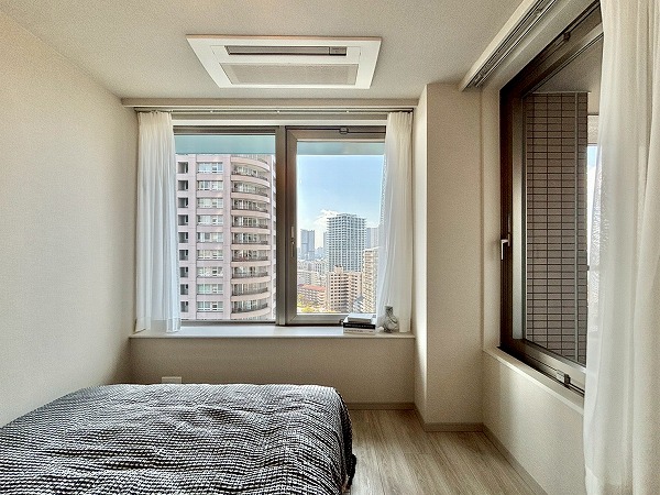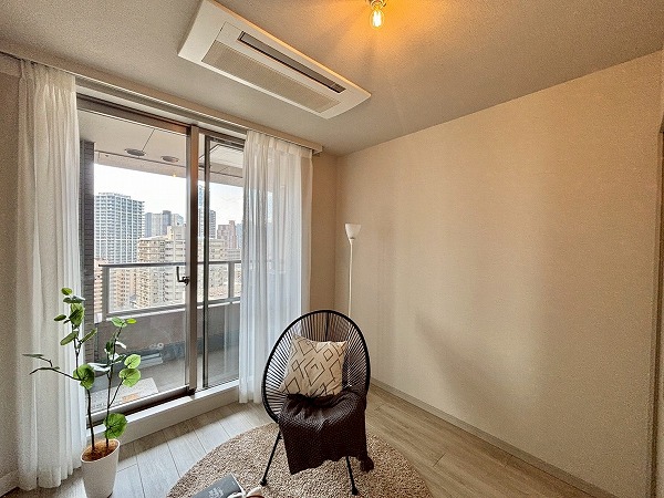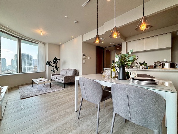 日中は煌めく街の様子を、夕暮れ時には空と街が織りなすグラデーションを堪能でき、時間帯ごとに異なる表情を見せてくれるのも魅力のひとつ。都会の喧騒を感じつつも、43階の高さがもたらす静けさと開放感に包まれ、ここで過ごすひとときはまるで日常の中の特別なリゾートのよう。窓際に立てば、遠くの景色を眺めながらゆったりとした時間を過ごせ、朝の光で目覚め、夕暮れの景色に”心を休める”そんな日々をこのお部屋で実現できます♡