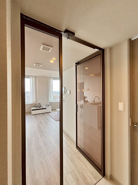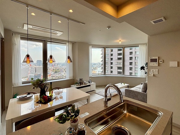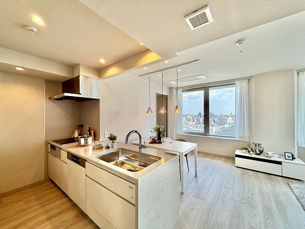 下町情緒と再開発の気配が共存する街、月島。駅から徒歩9分、もんじゃストリートの賑わいから少し離れた、静かなエリアに建つタワーマンションの一室をご紹介します。周囲には背の高い建物が少なく、歩いていると自然と空を見上げたくなるような抜け感のあるロケーションです。室内は東向きの開口部からしっかりと朝日が差し込む明るい住空間。前面に棟がないため採光と開放感に恵まれ、スカイツリーと東京湾を同時に臨む眺望を叶えています。設備面はオール電化仕様で、IHクッキングヒーターや浴室乾燥機、追焚機能、温水洗浄便座など、毎日の快適を支える機能が充実。冷暖房・床暖房に加え、キッチン床暖房まで備えており、寒さの厳しい日でも心地よく過ごせそうです。キッチンは独立型で、調理に集中できるつくり。火を使わないため安全性も高く、小さなお子さまやペットとの暮らしにも安心です。収納面も非常に優秀で、全居室に収納があるほかウォークインクローゼットも備えられ、衣類や日用品がすっきり収まります。実際に図面や設備一覧を見ただけでも、丁寧に整えられた室内の質の高さが伝わってきます♪日々の暮らしに機能性と快適性を求める方に、ぜひおすすめしたい一室です。