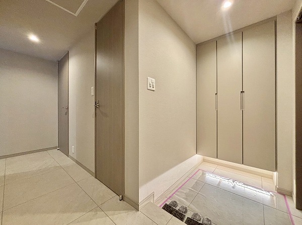 エレベーターは複数基あり、低層階用と上層階用で分かれています。ホテルライクな内廊下仕様で足音を軽減してくれる絨毯貼りなところもポイントです◎撮影時はクラシック音楽が流れていて、歩くだけで優雅な気分になりました。