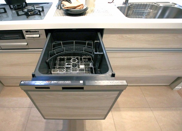 対面式キッチンはリビングの様子を見渡せる安心感のある造り。調理をしながら会話を楽しめるため、自然とコミュニケーションが生まれます。グリル付きコンロや広めのワークトップで、料理好きの方も満足できる仕様。さらに食洗機を搭載しており、日々の家事を効率よくサポート◎