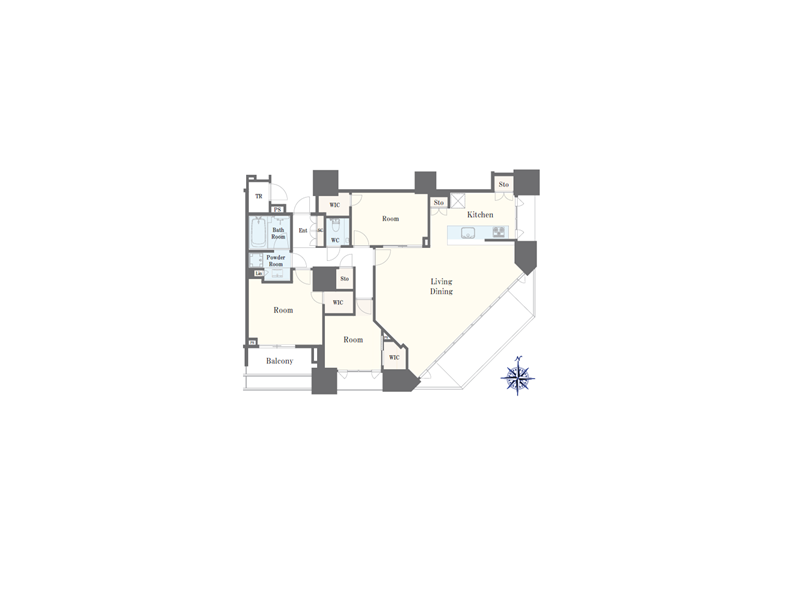 青い空に向かって真っすぐ伸びるツインタワー『DEUX TOURS(ドゥ・トゥール)』。グレーとホワイトを基調としたスタイリッシュな外観で、ガラスカーテンウォールに太陽光がキラキラと反射し輝いています。2015年築でまだまだ新しいマンションです。