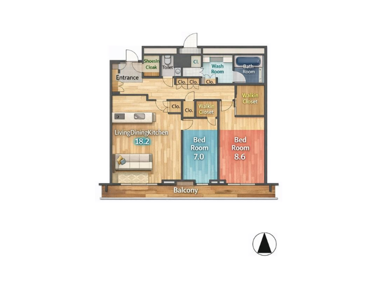 3つの洋室はそれぞれバルコニーに面していて、陽当たり&風通し良好。いずれの部屋にも収納が備わっているため、衣類や生活用品をすっきりまとめられるのも魅力。ウォークインクローゼットは約1.3帖と大容量♪