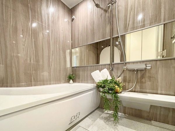 1418サイズのバスルームは、ゆとりをしっかり感じられる広さ。木目デザインがあしらわれ、ぬくもりある雰囲気に包まれます。お子様と並んで入っても窮屈さを感じにくく、バスタイムが親子の楽しいコミュニケーション時間に。のびのびと湯船に浸かれるため1日の疲れを癒していただけますよ✧