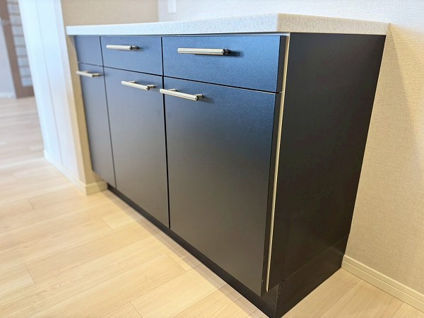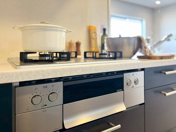 L字型システムキッチンは、約3.8帖のゆとりある設計。リビングダイニングを見渡せる開放的な造りで動線もスムーズです◎広い作業スペースと抜群の収納力で、毎日のお料理がもっと楽しくなりそう♡