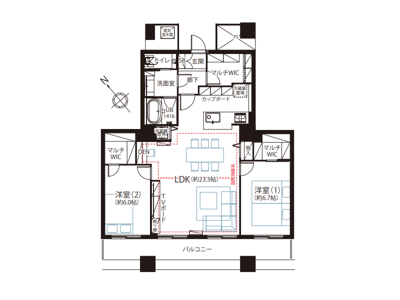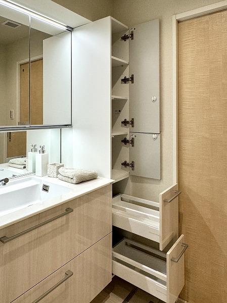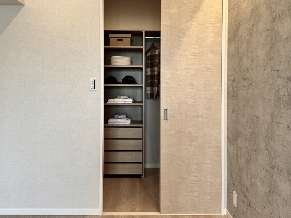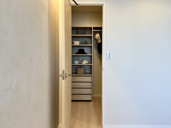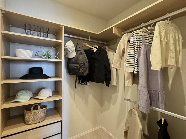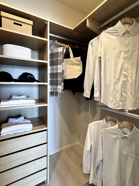 どちらの洋室にもマルチWICを完備しています。ポールハンガーはもちろん、棚や引き出しも充実しているので、衣類から小物まで整理しやすく、すっきり片付く収納環境が整っています◎