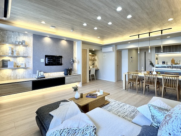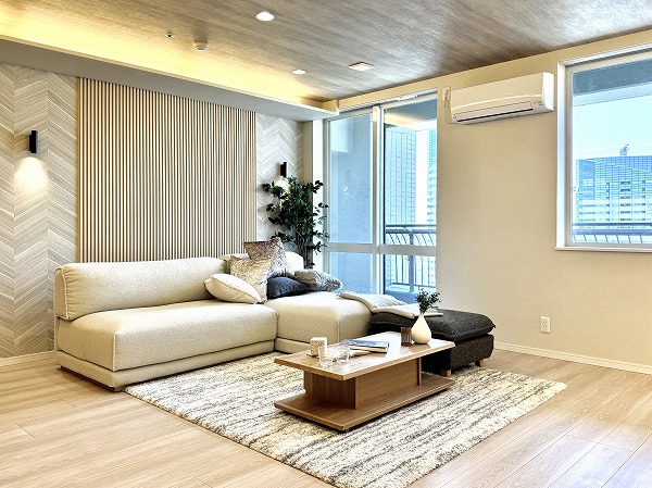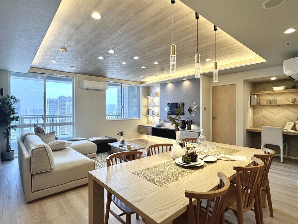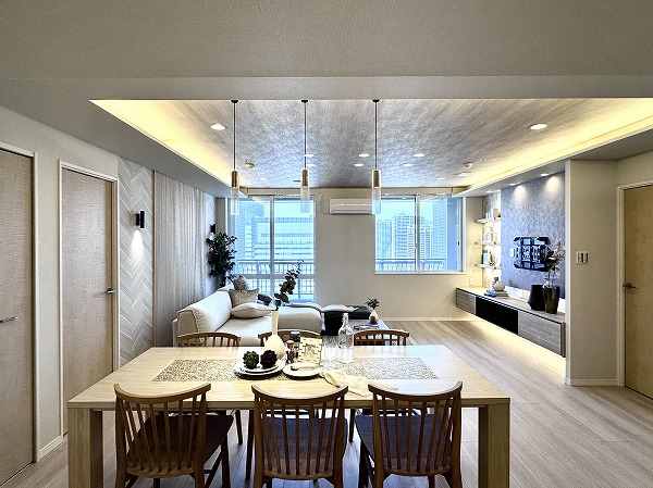 今回ご紹介するのは、ご家族での暮らしに最適な2SLDK。専有面積84.45㎡という贅沢な広さを誇り、約23.3帖のLDKは思わず息を呑む開放感です。室内はフルリノベーション済みで、すみずみまで洗練されたデザインが施されたスタイリッシュな空間へと生まれ変わっています✧