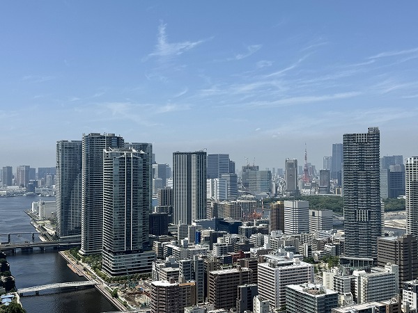 こちらのお部屋は43階に位置し、眼下に広がる中央区の都会的な景色を一望できます。「東京タワー」の姿や運河の流れが視界に入り、眺めているだけで気分が高揚するような圧巻の眺望が魅力です♡