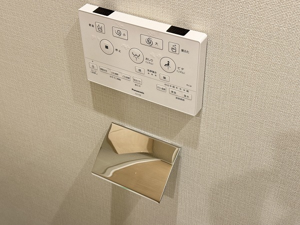 エントランスは、一見ホテルに来たかのように錯覚させる館銘板が出迎えてくれます。自動ドアのため大きな荷物を持ち両手がふさがっているときやベビーカー、車いすをご利用時でも不自由なく中へ入れますね。こちらのメインのエントランス以外にも入り口がありましたが各々オートロックが付いていて、安心安全です。