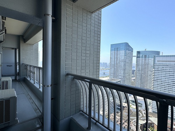 マンション中央部は吹き抜けになっていて、青空や暖かい太陽の光が差し込む仕様になっています。風通しもよく爽やかな外廊下です。出勤前、お部屋を出た瞬間から気持ちが引き締まりそうな空間でした。