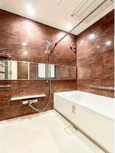 落ち着いた色味のストーン調パネルに包まれた浴室は、まるでホテルのような雰囲気。広々としたバスタブと追い焚き機能により、好きなタイミングで癒しのバスタイムを楽しことが・・・♡もちろん浴室乾燥機能も備え、雨の日の洗濯にも対応。