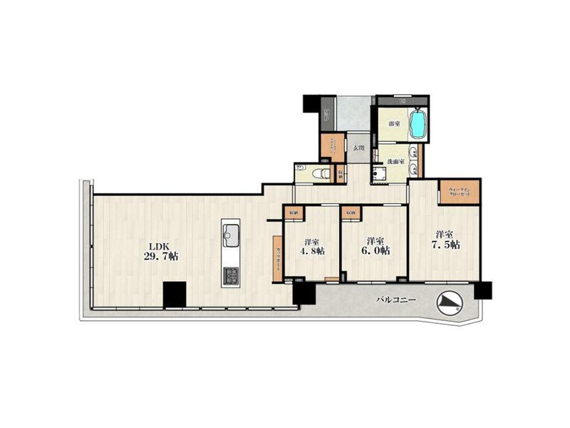 ペットと一緒に暮らせる点も魅力で、家族みんなが心地よく過ごせる住まいをお探しの方にぴったりです。玄関には大容量のシューズインクローゼットを備えており、靴やアウトドア用品がすっきり片付きます。洋室は約4.5帖・5.0帖・6.5帖の3部屋で、それぞれ使い勝手の良いサイズ感。とくに6.5帖の洋室にはウォークインクローゼットがあり、衣類や季節物の収納にも困りません。メインのLDKは約12.7帖。家族でのリラックスタイムをゆったり過ごせる広さです。さらにエアコンが3台設置済みなので、入居時の費用を抑えられるのも嬉しいポイント。LDKには収納スペースも備わっており、生活感を隠しながらすっきり過ごせます。キッチンは約3.7帖で、食洗機とカップボードを標準装備。調理も片付けも効率的にこなせる、使いやすさにこだわった空間。洗面台・洗濯機置き場・バスルームがひとまとめになったサニタリールームは、家事動線がスムーズ♪バスルームには追い焚き機能と浴室乾燥機を完備しており、毎日の疲れをしっかり癒してくれます。ぜひ現地でもご覧くださいね。 ライター:emi【24K22】