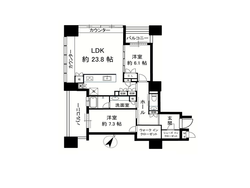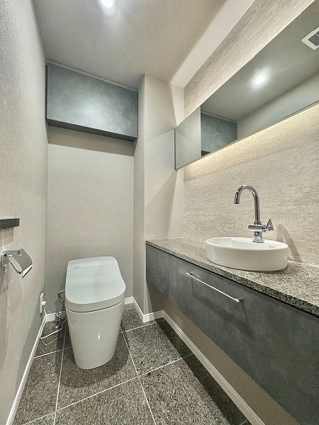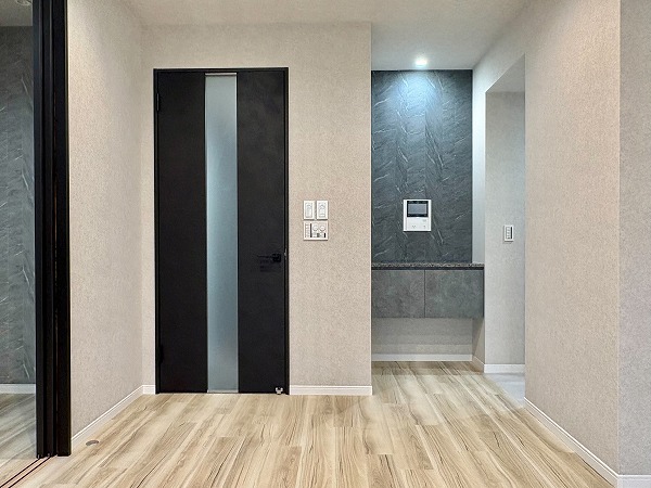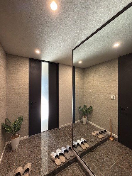 玄関、廊下、トイレのフロア部分には天然石が採用されています。ピカピカのフロアを歩いて、ラグジュアリーな雰囲気をご堪能ください。広々とした玄関には、シューズインクローゼットを完備しています。