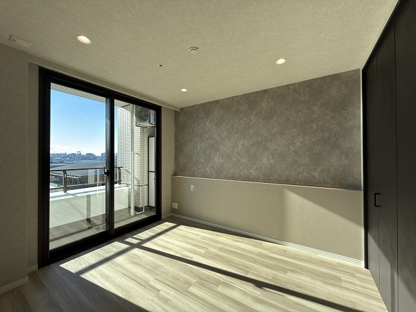 バルコニーに面したおおよそ6.4帖の洋室。陽当たり&風通しが良く、寝室にもピッタリです。大容量のクローゼットには季節もののコートやかさばりやすいダウンジャケットなども綺麗に保管できます。