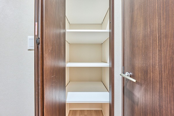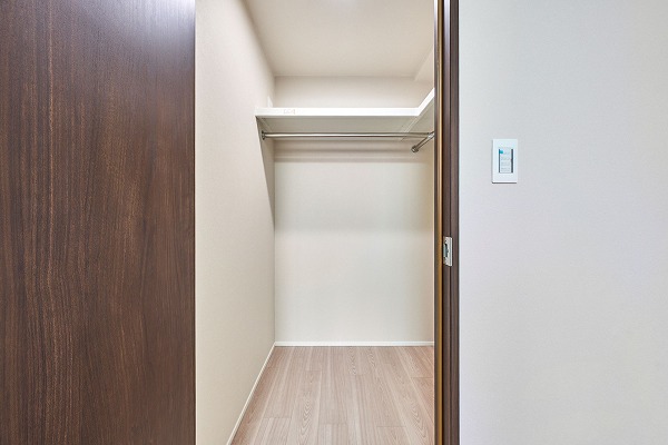 収納力の高いシューズインクロークが玄関に備わっています。可動棚で自由に調整できるため、多様なサイズの靴を整理しやすい仕様。ベビーカーやペットバギー、アウトドア用品なども収納でき、玄関まわりをすっきり保てそうです。