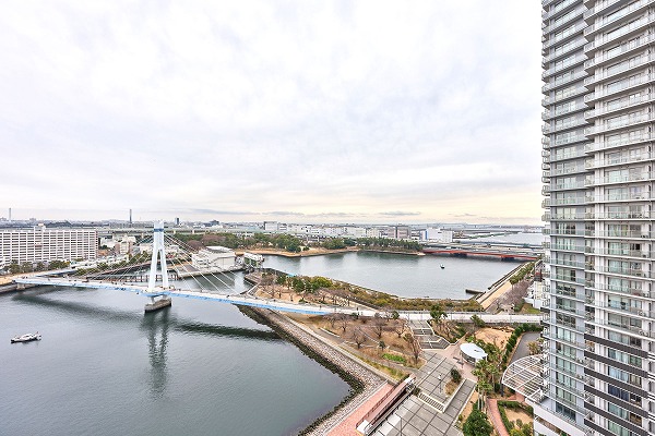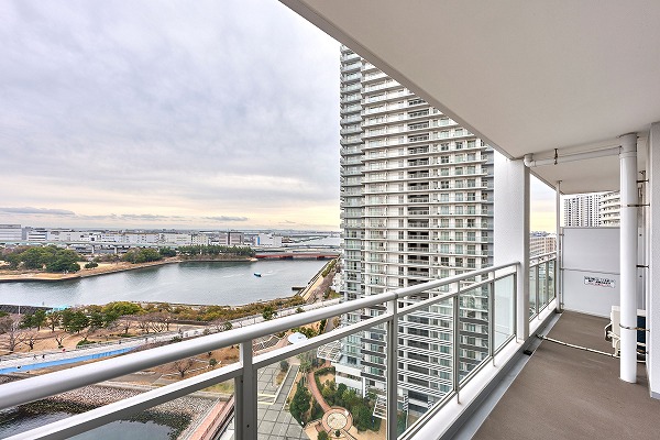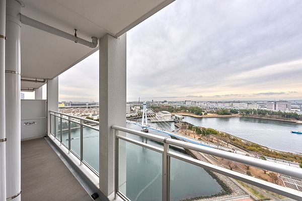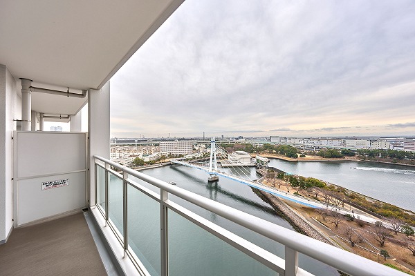 バルコニーは視界が開けた開放的な眺望が魅力。南東向きのため陽当りも良く、爽やかな空気を感じられます。水辺からの心地よい風が吹き抜ける、リフレッシュにぴったりのアウトドア空間です☀