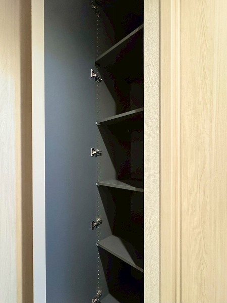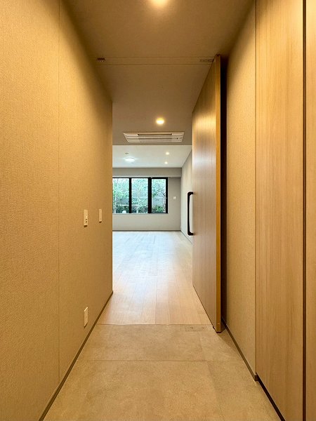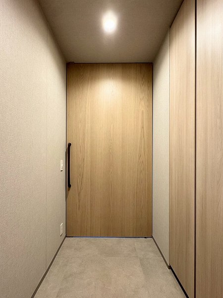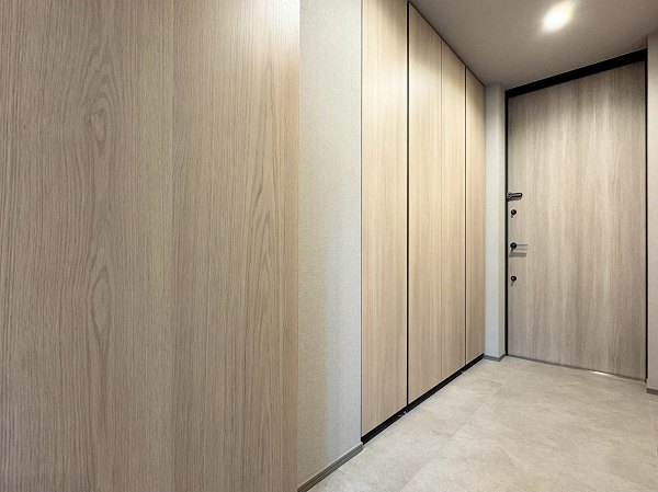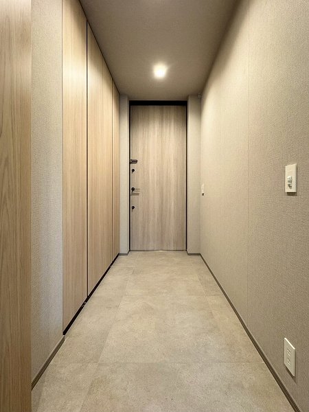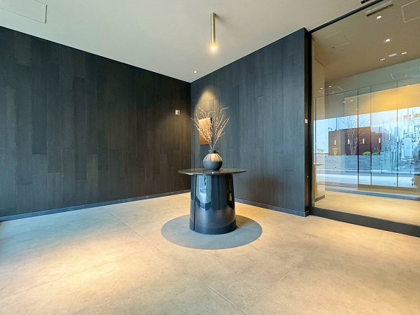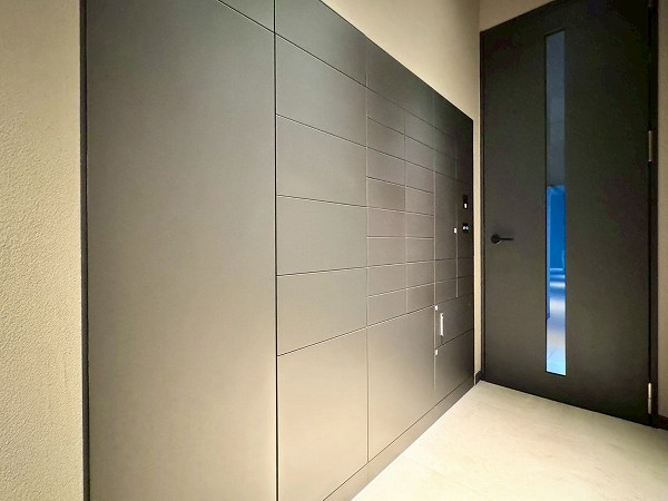 大きなFIX窓から差し込む光と、素材感のあるブラック壁面が印象的なロビー。ホテルラウンジのように洗練された空間が広がり、住まう人を優雅に迎え入れます。宅配ボックス付きで、日常の利便性もしっかりとサポート!