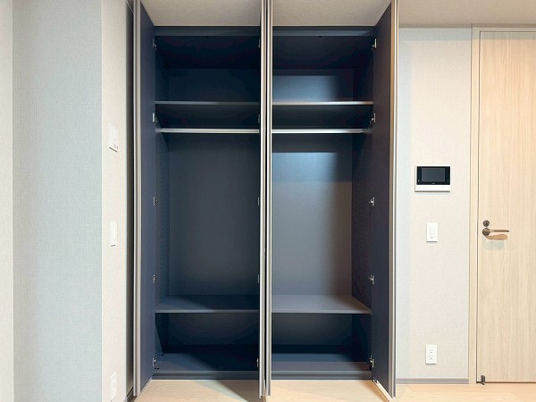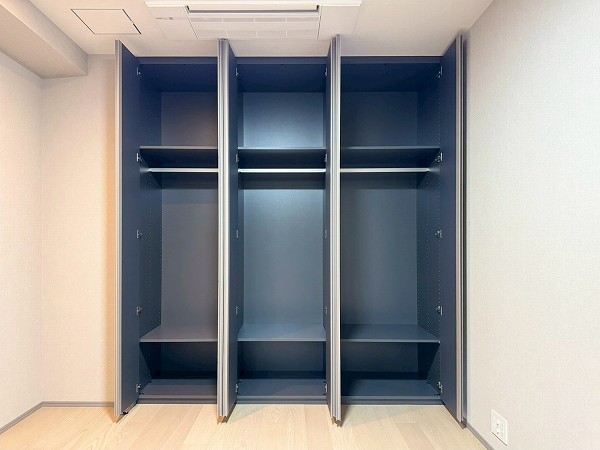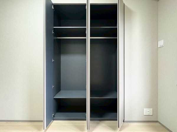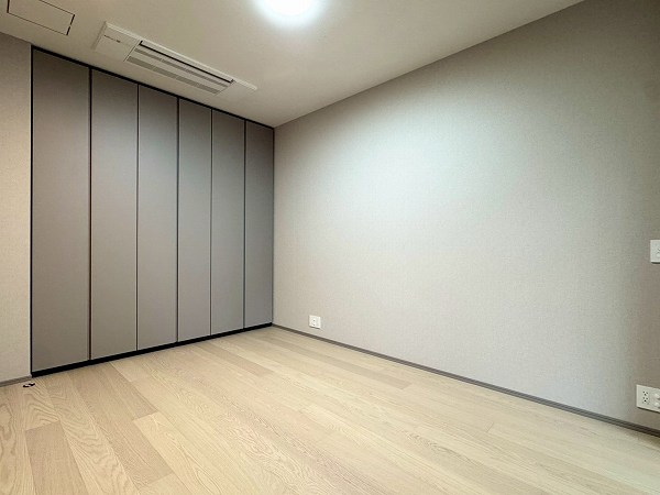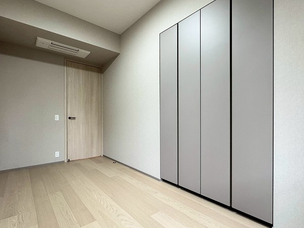 主寝室にぴったりの洋室は約8.2帖の広さ。2面に配置されたクローゼットのおかげで収納力は十分で、大きなベッドを置いても圧迫感がありません◎収納家具をあえて用意せず、すっきりとした空間で寝室をゆったりと使えるのが嬉しいポイントです。
