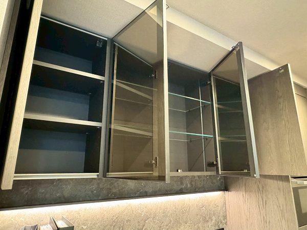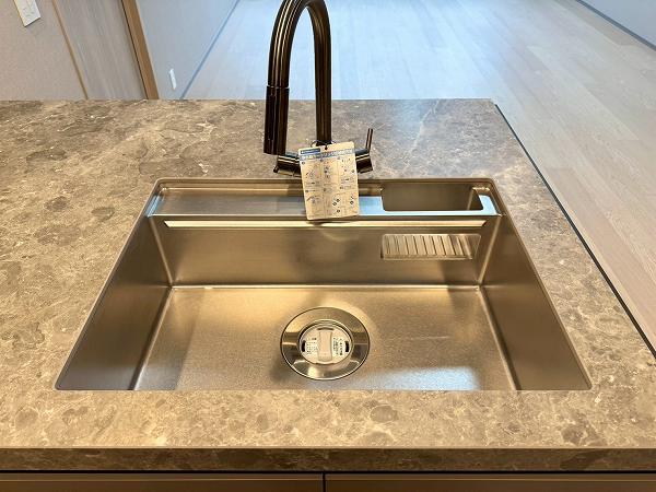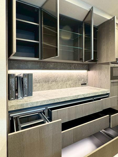 シックなブラックカラーでまとめられたキッチンには、ハイクオリティブランド「Molteni&C」のシステムキッチンを採用✦洗練されたデザインが空間に上質なアクセントを添え、まるでインテリアの一部のような美しい存在感を放っています。