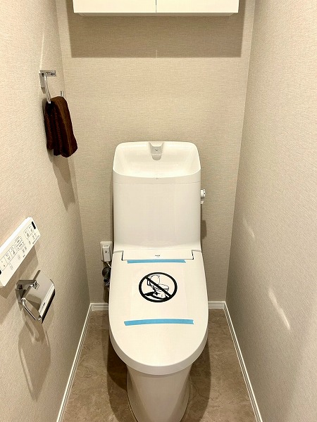 エントランスホールは広々としており、高級感と清潔感にあふれる快適な空間です。ソファやテーブルが配置されているため、来客時の待ち合わせにも便利にご利用いただけます。また、共用のお手洗いも設けられており、外出前にわざわざお部屋へ戻る手間が省ける点も嬉しいポイントです。