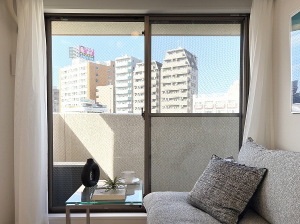 約11.9帖のリビングダイニングキッチンは、家具の配置次第で様々な“顔”を見せてくれそうなゆとりある間取り。2つの窓があるため効率良く換気を行うことができ、風通しの良さが魅力的です。リビングと洋室の2面からバルコニーへ出入りできるので、採光性が高く快適度アップ。