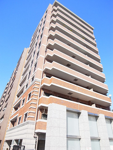 東京湾に繋がる運河のほとりに佇む「デ・リード勝どきグランビュー」★平成築になるのでレンガのタイル貼りが目を惹く外観はまだまだ綺麗に保たれています。