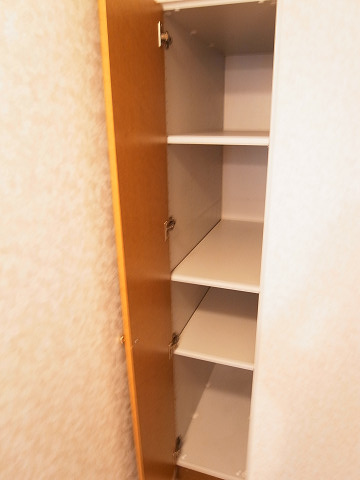 棚が設置されていますが横幅が狭く靴を収納するには向いていないので、日用品等をしまっておくのが良さそうです(o^-^o)