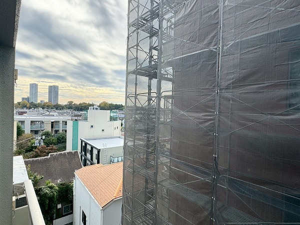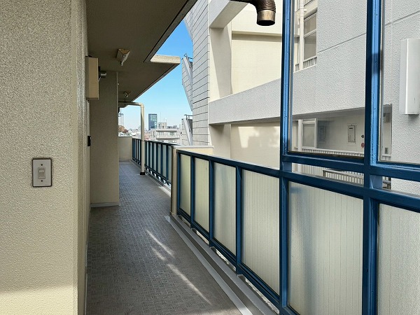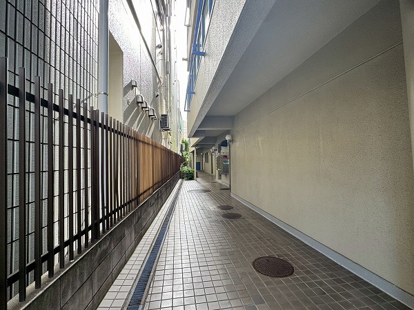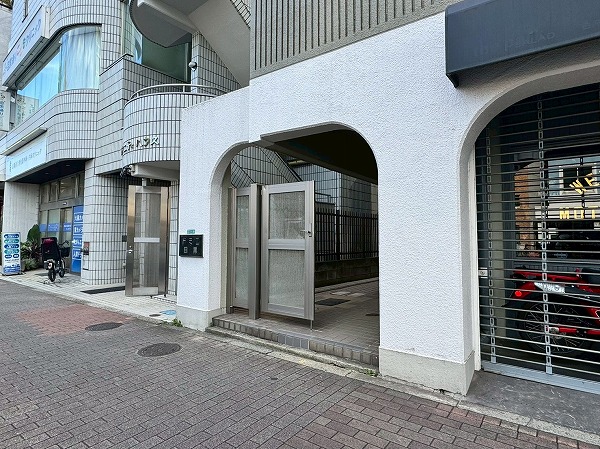 総戸数24戸、鉄筋コンクリート造6階建ての『ドミニ目黒』。シャープなデザインの外観は、存在感がありました。大通りからは廊下や玄関ドアなど共用部が一切見えず、プライバシーの保護になります。