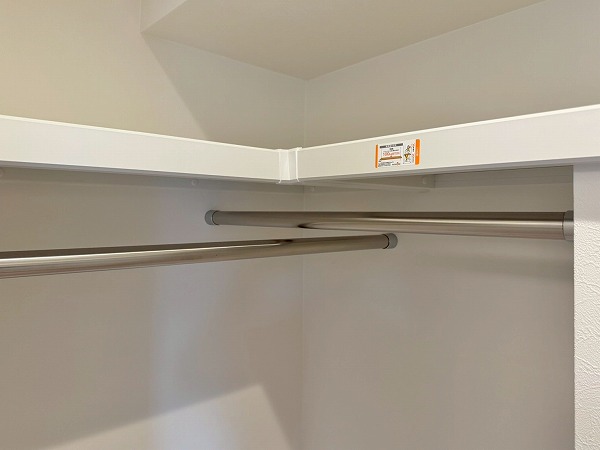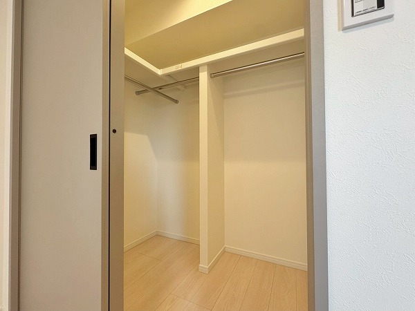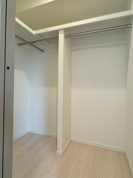 約5.2帖の洋室はウォークインクローゼットが備わっています。中には仕切りがあり、季節ごとに収納できるため、模様替えの必要がなくなりそうです!中に棚や収納ボックスをお置いて、スペースを最大限に活かすこともできますね!