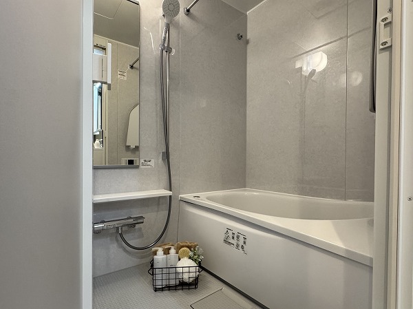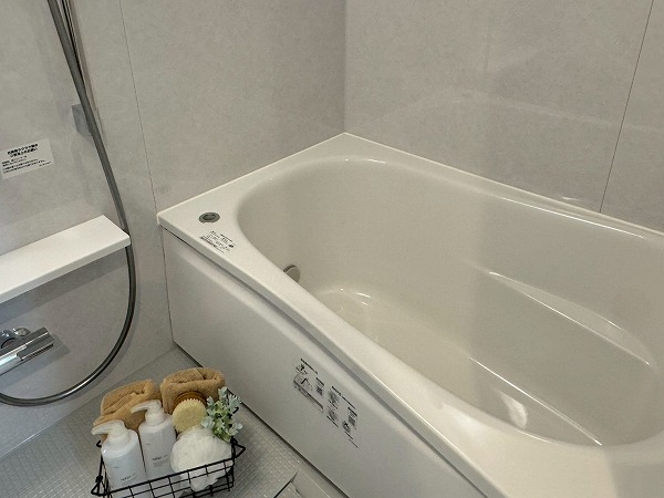 バスルームは浴室乾換気燥機能付きです。天候を気にすることなく洗濯物を干すことができ、生活の質が上がりそうです。さらに天気だけでなく、花粉や黄砂対策にもなりますよ。暖房機能を使えば、冬場でも寒さを感じにくく、快適なバスタイムになりますね。