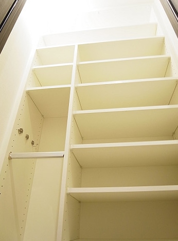 こちらのお部屋はウォークインクローゼットが設置されています♬枕棚がL字になっているので、ピッタリサイズの引き出しを置いて、小物類を収納するのはいかがでしょう♬
